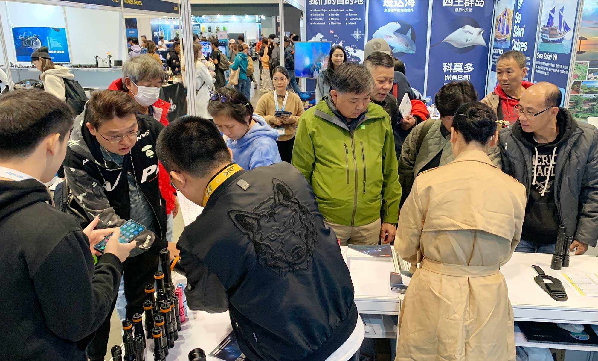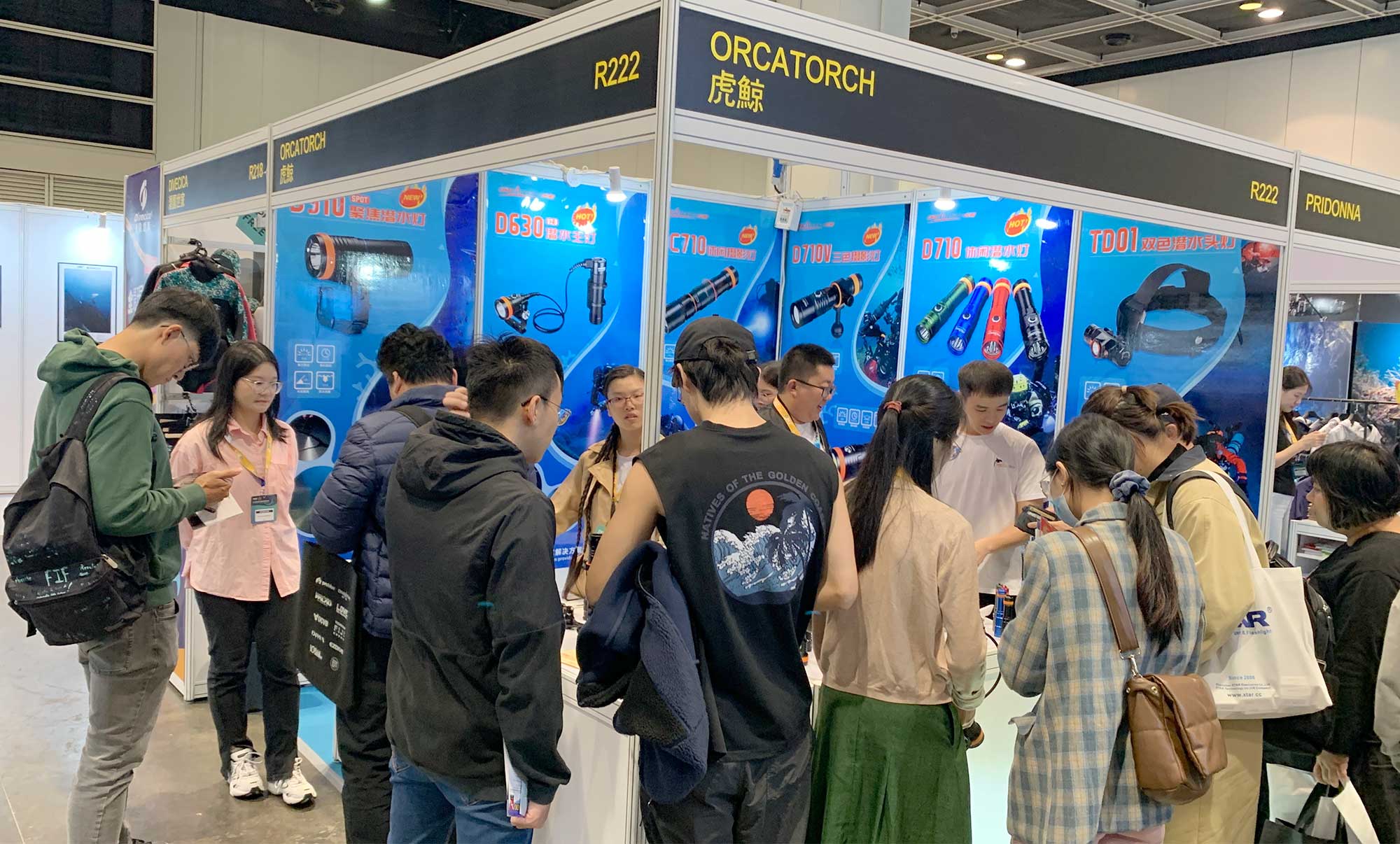 在展會現場,OrcaTorch木瓜视频潛水燈的展示區人頭攢動,參(cān)觀者們紛紛駐足(zú)觀看,詳細了解產品的特點和(hé)優勢。不少潛水愛好者更是親自試用,親身體驗了OrcaTorch木瓜视频潛水燈的出色性能(néng)。