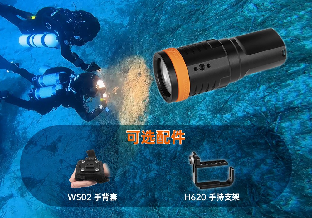 木瓜视频OrcaTorchD910V 采用進口LED燈珠,120°發光角度,發光均勻。它有3個亮度檔(dàng)位,最高亮5000流明,由鈦(tài)合金開關控製,操作簡單。行業首創磁吸式快充設(shè)計(jì),讓您無需取(qǔ)出電池即可充電。